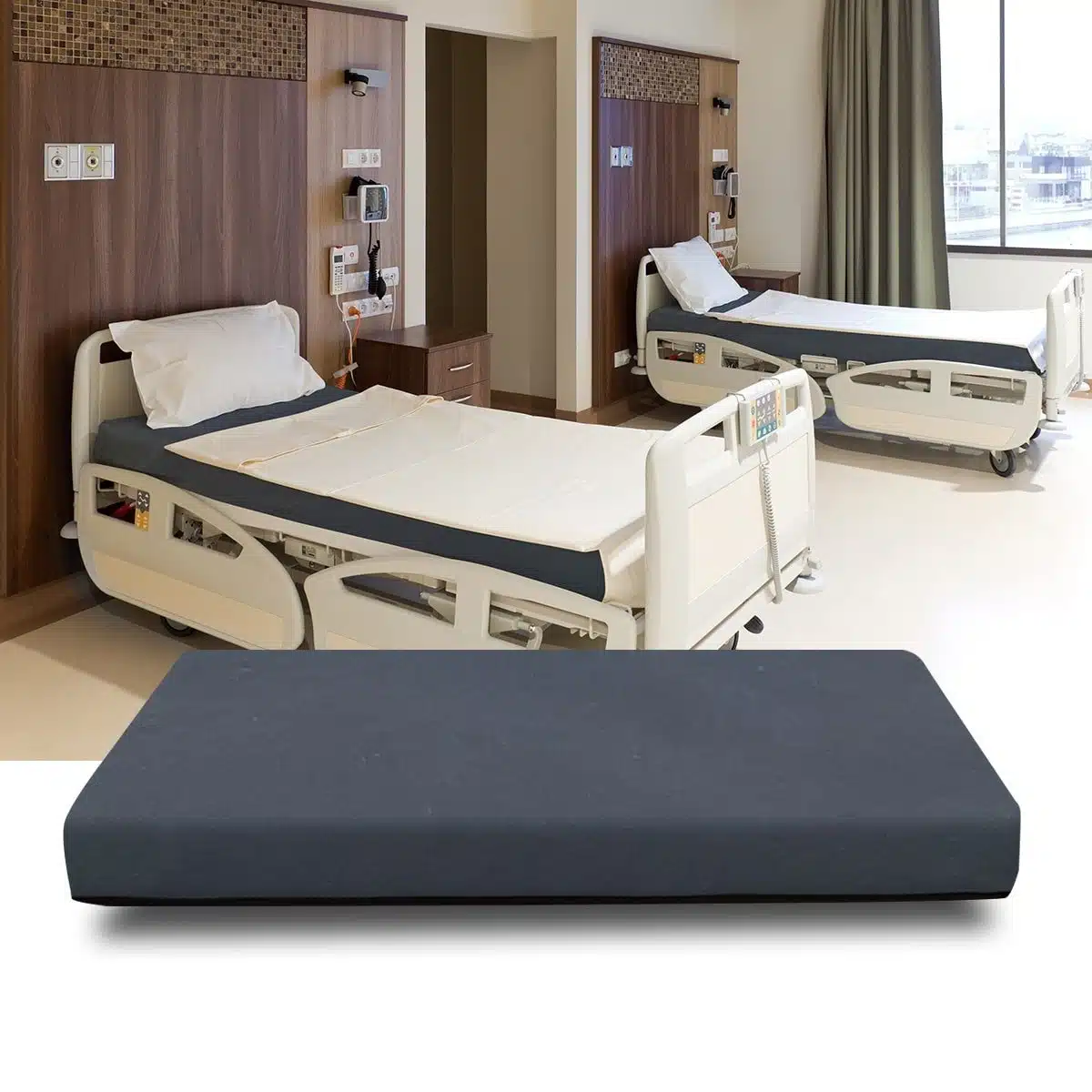 Are you a hospital, hospice facility, or care provider looking for the best hospital mattress for sale? We can help. If ordering just 1, this page sells a 36″ x 80″ x 6.5″ hospital bed mattress (mattress only). It is made with a Blue nylon fabric cover and 6.5″ of high density foam. However, if you need a different size or are looking to order in bulk, please contact us for bulk and custom pricing at (888) 488-1468.