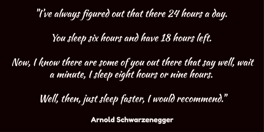 “I’ve always figured out that there 24 hours a day. You sleep six hours and have 18 hours left. Now, I know there are some of you out there that say well, wait a minute, I sleep eight hours or nine hours. Well, then, just sleep faster, I would recommend.”