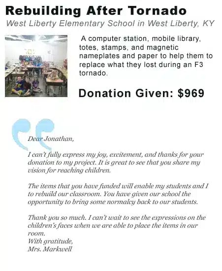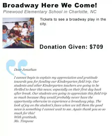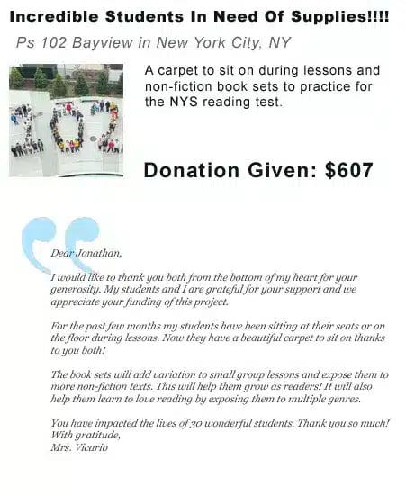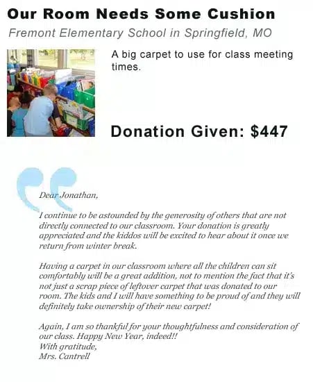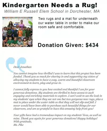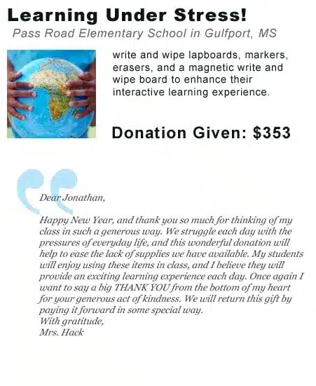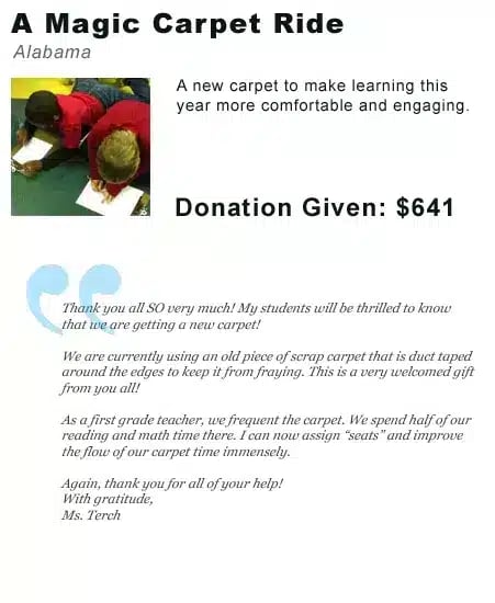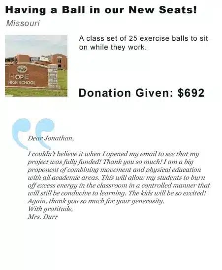 Read the details of our recent contributions, what they went towards, and responses from teachers.