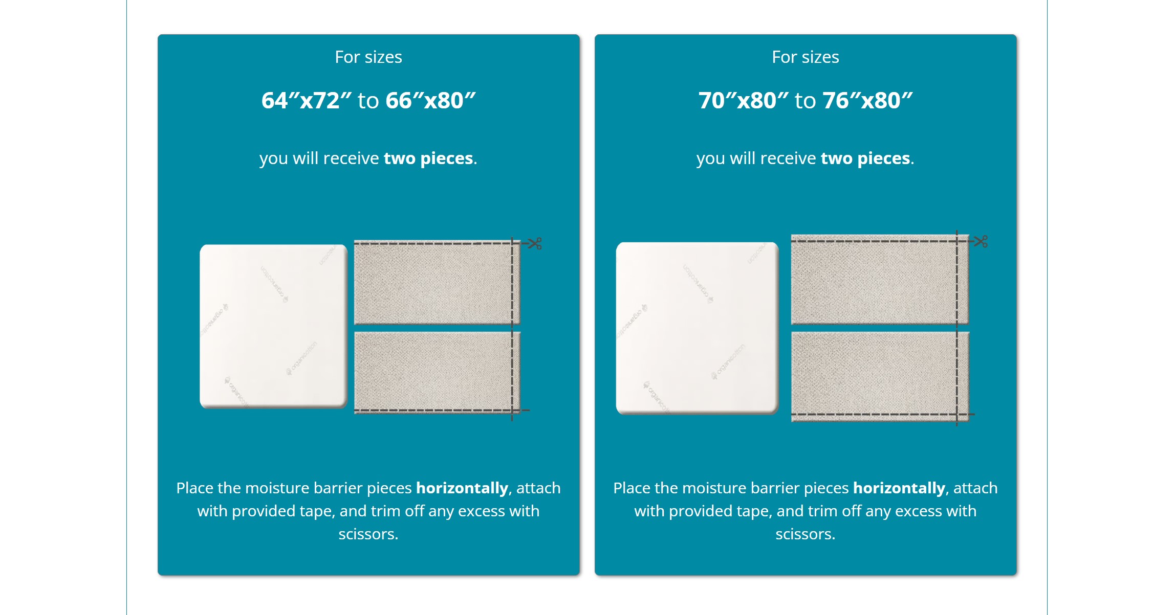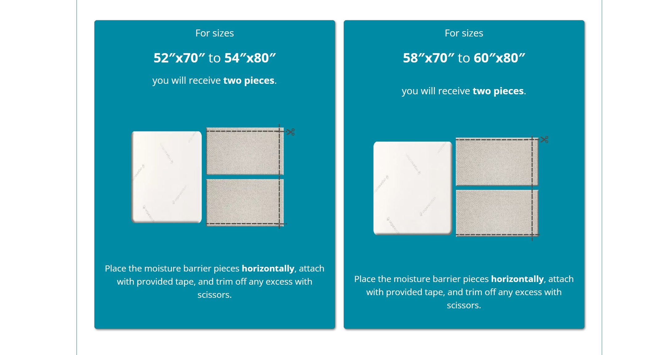 Place the moisture barrier pieces horizontally, attach with provided tape, and trim off any excess with scissors.
