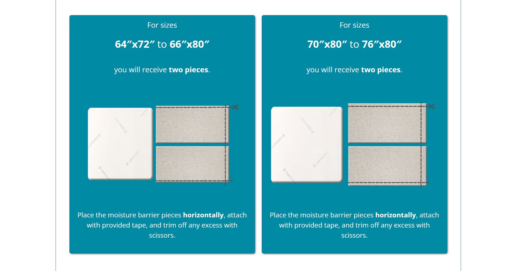 Please note: depending on the size you require, the moisture barrier may come in two pieces. For more detailed information, take a look at our sizing chart below.Â