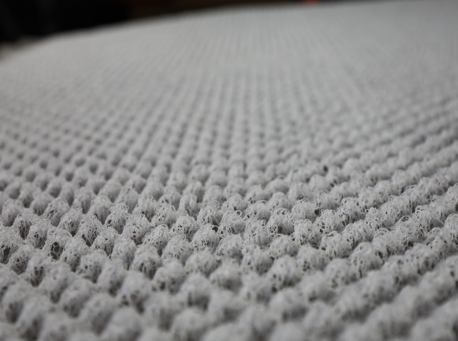 It’s a 3/4″ thick industrial-grade woven polymer material bonded to a breathable fabric. Â The material was originally designed for water drainage in parking structures and soccer fields.
