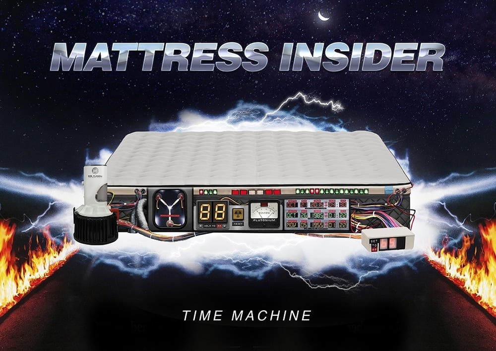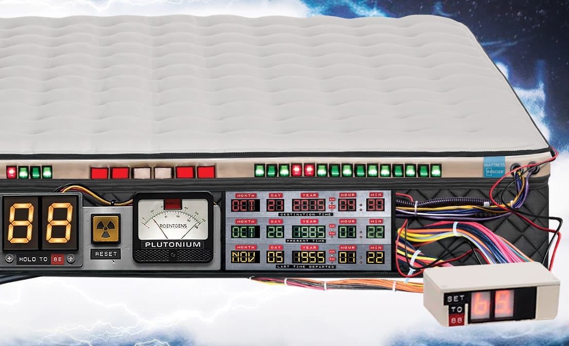 You must be fully lying down on the mattress at the moment you hit 88 MPH.ย So maybe get on a freeway, and put a brick on the accelerator. Run really quickly over to the mattress and lie down on it (use included seatbelts).ย Now youโve got to think, McFly! So do this at night time, on a remote stretch of highway, where no one else can possibly be on the road.ย Once you reach your desired past/future date, run really quickly back to the driver’s seat and put the brakes on (before you hit something/someone). After all, we learned with Jailbird Joey that it may be difficult to make bail (if youโre arrested for speeding).ย Note: MattressInsider.com is not responsible for any accidents or deaths you cause by doing this.ย You will be emailed a waiver after you place your order, before your time travel mattress ships.ย ย Alsoโฆ. hitting/killing things in the past can affect the future! So be careful!