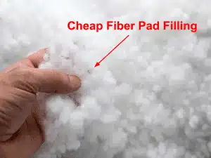 So what makes stock bunk mattresses so sub-par? The answer lies in the use of thin layers of cheap fiber filling. This fiber is often made from scrap material blended into a fiber pad consistency. That filling is then stuffed into a 2 to 3-inch pad, where it often gets squished down into a one-inch, rock-hard pancake after only a few nights of not-so-restful slumber.